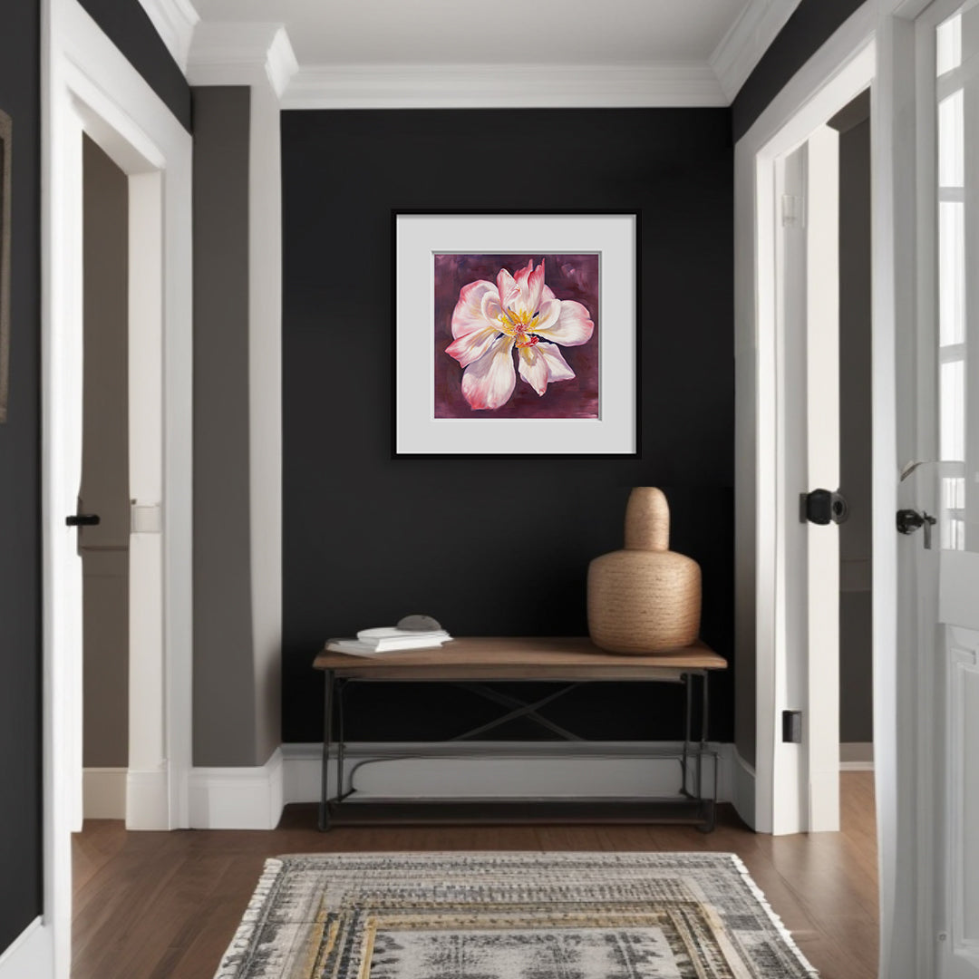 I painted it against a deep plum ground, loose and expressive, to mirror the tension between softness and energy. The brushwork moves more freely here, giving the composition breath and urgency. Even as it faded, this flower held so much presence. I wanted to honor that, to show that beauty doesn’t disappear as things fall apart. Sometimes it becomes more vivid.